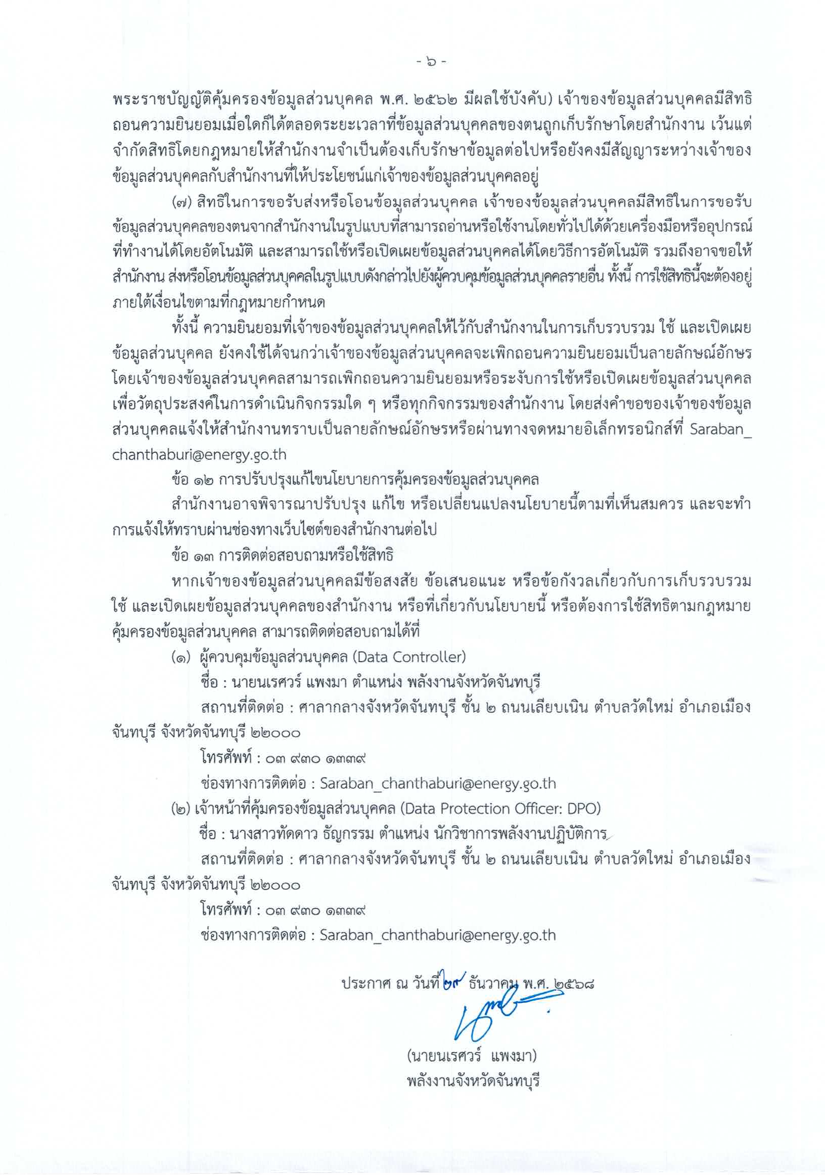 สำนักงานพลังงานจังหวัดจันทบุรี ขอประกาศนโยบายการคุ้มครองข้อมูลส่วนบุคคล(Privacy Policy) ของสำนักงานพลังงานจังหวัดจันทบุรี