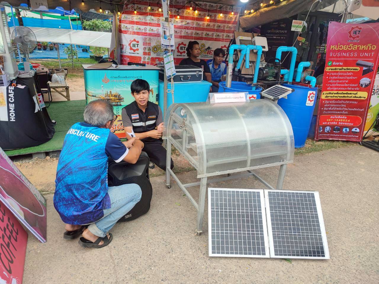 ภายในบูธ สำนักงานพลังงานจังหวัดจันทบุรีได้นำเสนอความรู้เกี่ยวกับการผลิตไฟฟ้าจากพลังงานแสงอาทิตย์ การออกแบบและติดตั้งระบบโซลาร์เซลล์ให้เหมาะสมกับลักษณะการใช้งาน ทั้งในภาคการเกษตรและที่อยู่อาศัย พร้อมทั้งจัดแสดง “ตู้อบพลังงานแสงอาทิตย์” ซึ่งเป็นอีกหนึ่งนวัตกรรมที่ช่วยเพิ่มมูลค่าผลผลิตทางการเกษตร ลดการใช้พลังงานเชื้อเพลิง และลดต้นทุนการผลิต